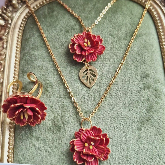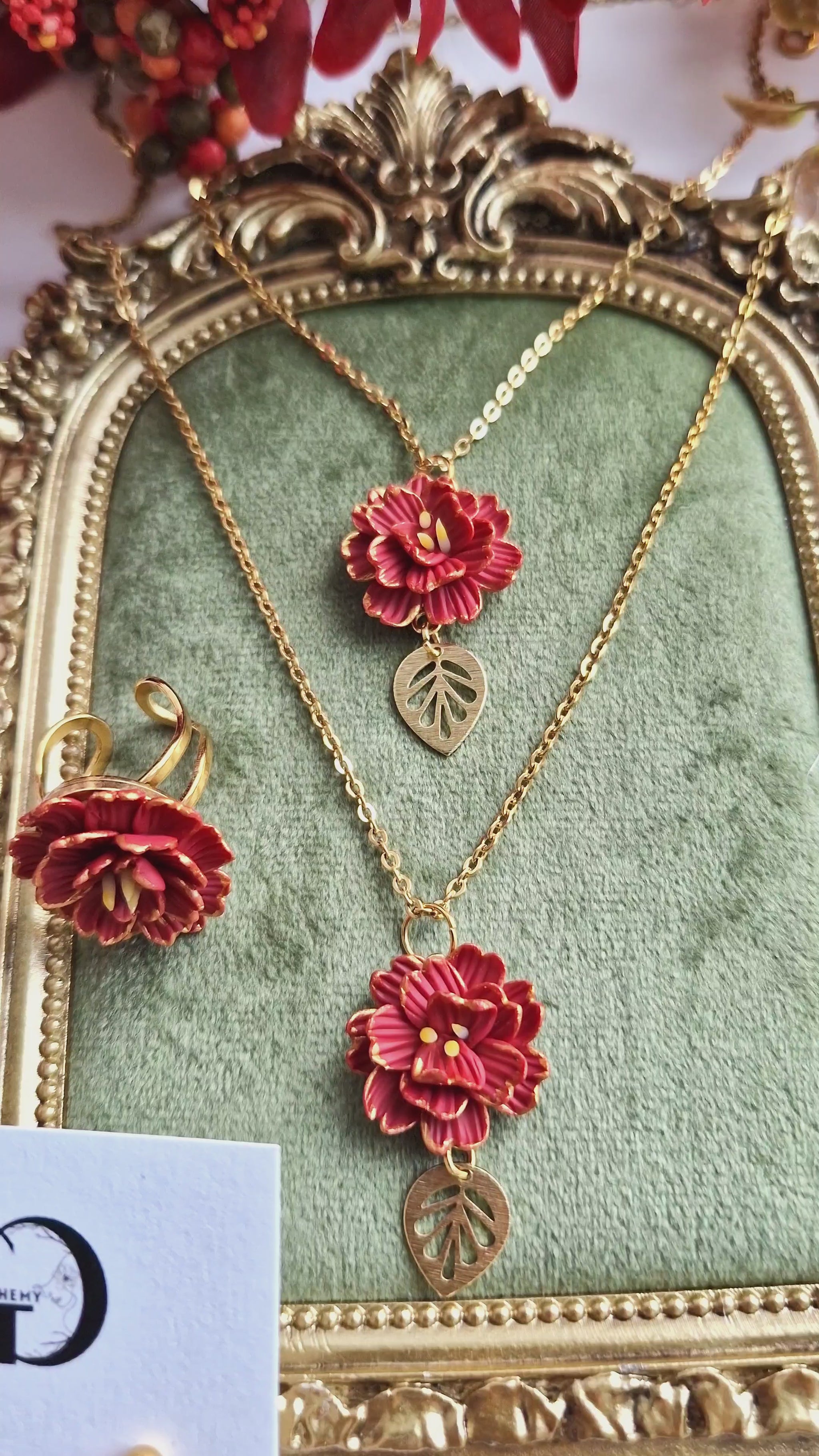 Every petal tells a story —this crimson floral set was lovingly handmade to bring warmth and elegance into your fall looks. Golden accents meet deep autumn tones, creating jewelry that feels as timeless as the season itself!!