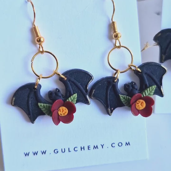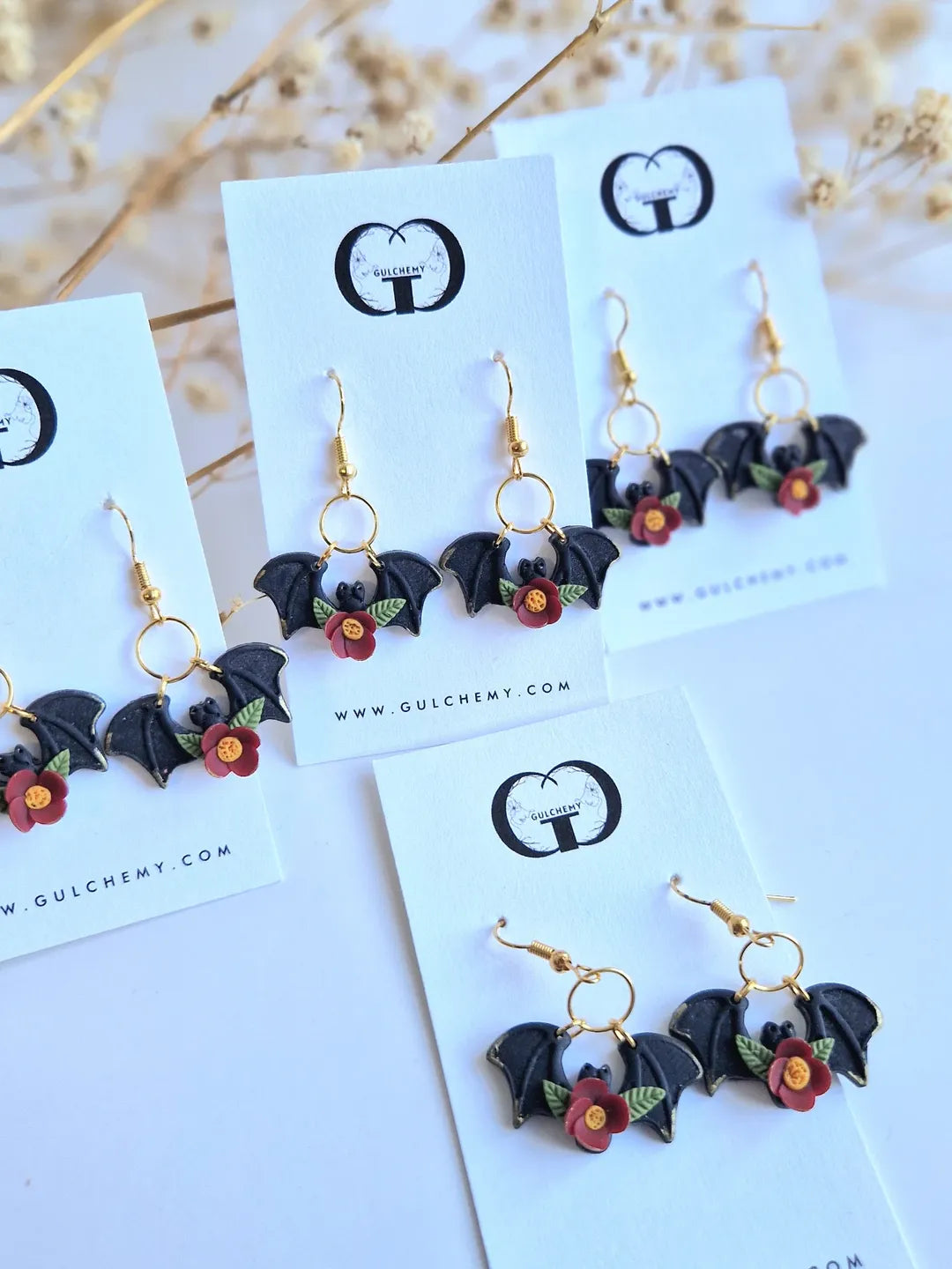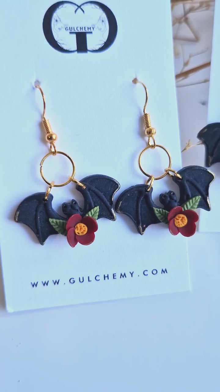 When I think of Halloween nights, I remember the thrill of spotting bats fluttering against the moonlight — a little spooky but so fascinating. These earrings were my way of bottling up that feeling: dark wings, soft blooms, and the magic of October skies.
