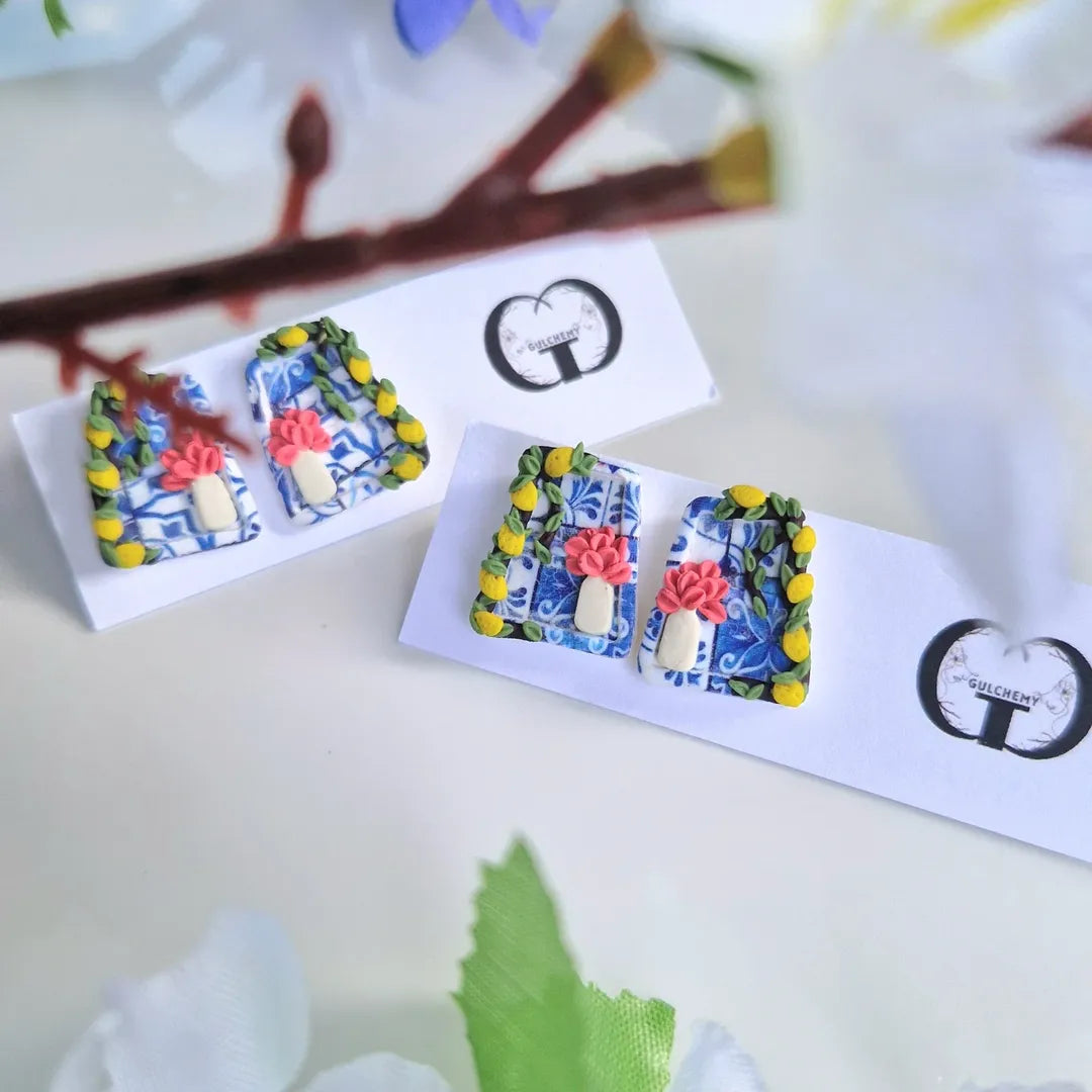 A bloom framed in citrus, a memory carved in tile 🍋💙